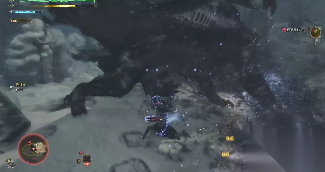 开局策略可分为两种:太刀使用者建议快速积攒红刃,利用首次吐息后的硬直期打出爆发伤害;重弩使用者则推荐保持中距离,用穿透弹或散弹压制翅膀和头部。战斗中需特别注意站位,避免长时间停留在怪物正前方或侧面死角,尤其要防范其突然的尾巴或翼爪反击。当黑蚀龙起飞时,可朝其影子反方向移动来躲避俯冲攻击,远程武器使用者可预判飞行轨迹发射控制类弹药创造输出机会。近战玩家可利用"小拍"和"翼拍"后的短暂破绽进行蹭刀,但需注意控制攻击节奏避免贪刀。