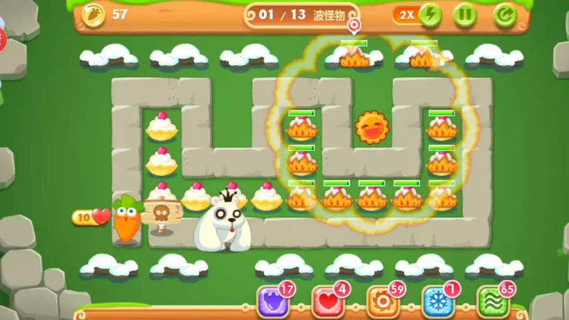 开新坑了,和迅玩版的遇见阿呆同时更新,当然可能就只会一天两边各一更了,有的关卡还得琢磨一下打法,以及后面的几个魔王关卡,到时候不破戒用几个道具还真过不了 第一关信息: 关卡波数:12 关卡任务: ①120s内找到4个隐藏的减速风扇 ②关卡中章鱼数量不超过4个 ③成功建造6个顶级炸弹星 关卡可选炮塔:瓶子炮 炸弹星 章鱼 关卡难度:炼狱 第二关信息: 关卡波数:14 关卡任务: ①关卡中月亮的数量不超过3个 ②100秒内找到四个隐藏的多重箭 ③使用手电筒消灭120个怪物 关卡可选炮塔:手电筒 玩具飞机 船锚炸弹 月亮 关卡难度:简单 第三关信息: 关卡波数:14 关卡任务: ①关卡中章鱼的数量不超过4个 ②使用冰锥消灭120个怪物 ③建造6个顶级减速风扇 关卡可选炮塔:冰锥 多重箭 章鱼 瓶子炮 关卡难度:? 关卡难度(怪物血量降低30%):普通 第四关信息: 关卡波数:13 关卡任务: ①成功建造5个顶级多重箭 ②120s内清除所有水壶 ③关卡中月亮的数量不超过4个 关卡可选炮塔:月亮 太阳花 瓶子炮 多重箭 关卡难度:普通 第五关信息: 关卡波数:13 关卡任务: ①关卡中不建造太阳花 ②150s内清除14个花盆 ③使用章鱼消灭150个怪物 关卡可选炮塔:章鱼 太阳花 手电筒 便便 关卡难度:无解 关卡难度(怪物血量降低30%):炼狱 第六关信息: 关卡波数:12 关卡任务: ①关卡中月亮的数量不超过2个 ②120s内清除全部钱袋 ③成功建造8个顶级炸弹星 关卡可选炮塔:魔法球 手电筒 月亮 便便 关卡难度:普通 第七关信息: 关卡波数:12 关卡任务: ①100s内清除两个花架 ②建造6个顶级冰锥 ③使用冰锥消灭120个怪物 关卡可选炮塔:瓶子炮 章鱼 多重箭 关卡难度:炼狱 第八关信息: 关卡波数:12 关卡任务: ①关卡中章鱼的数量不超过2个 ②关卡中减速风扇的数量不超过3个 ③50秒内找到两个隐藏炮塔 关卡登场炮塔:章鱼 减速风扇 多重箭 火箭筒 关卡难度:普通