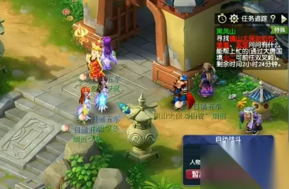 三、保护玄奘 在保护玄奘阶段,玩家需确保玄奘不受怪物攻击。此时,捡拾花朵的角色可利用花朵对怪物进行干扰,为其他角色争取攻击时间。完成此阶段后,玩家将进入观音寺,需击杀鬼祟的黑熊以获得奖励。 四、观音寺探险 观音寺内共有五处火焰,位置随机。若队伍实力较强,可直接击杀火焰附近的怪物;若实力稍逊或抗性较低,建议寻找避火罩以降低难度。完成此阶段后,火焰将变为小火,战斗难度大大降低。