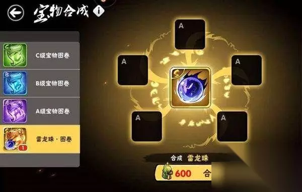 7、宝物合成 我们采用将没用的低级宝物拿去合成,锻造出新的高级宝物。