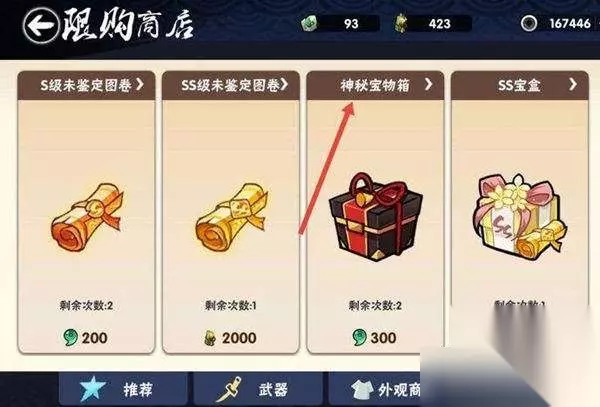 6、限购商店 限购商店中有个忍村宝物库,打开神秘宝物箱也可以获得。