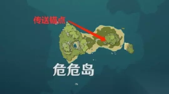 请使用传送锚点前往危危岛,然后按照图中标记的方向前进。 该处壁画所在位置位于标记处下方的石壁上
