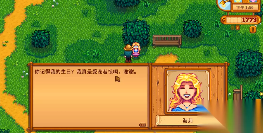 提升好感度的核心方法是送礼和对话。送礼是最有效的途径,你需要精准地送出她最爱的礼物。海莉特别偏爱向日葵、椰子、水果沙拉、粉红蛋糕以及夏季的蓝莓等精致美好的东西。向日葵可以在春季种植,椰子在沙漠开启后能在沙滩捡到,水果沙拉和粉红蛋糕则需要制作或从旅行货车购买。务必避免送她矿石、鱼或一些普通的农作物,这些礼物会让她皱眉,导致好感度下降。除了礼物,每天见面时坚持和她聊天对话,选择友善的选项,也能稳定地积累少量好感度。记住她的生日是春季14日,在这天送上她最爱的礼物,获得的好感度会是平时的八倍,这是拉近关系的黄金机会。