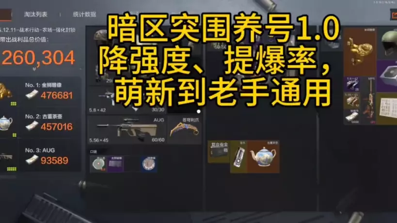 这是《暗区突围》的“强农极速摸金流”玩法教学,介绍该玩法能20分钟轻松赚200万,展示了物资整备、装备选择等准备环节,还有对局内的摸金技巧,帮助玩家快速获取高价值物资。