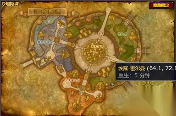2.寻找埃隆·霍尔曼: 到达沙塔斯城右下角的坐标位置 (64.1, 72.1),你将会找到NPC 埃隆·霍尔曼。