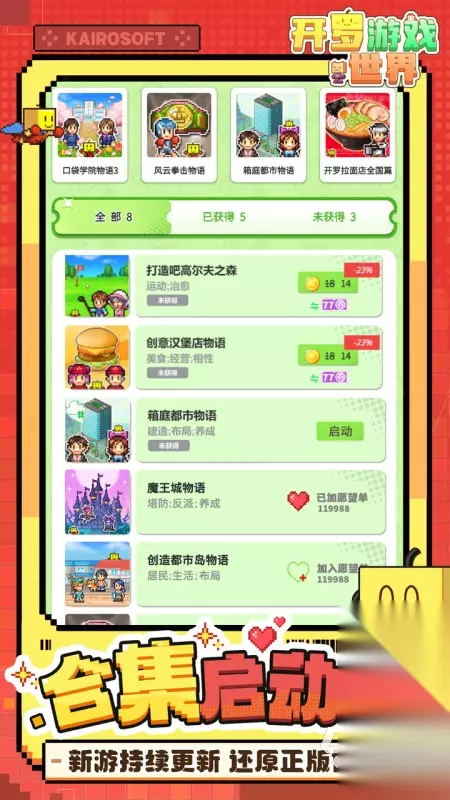 休闲放置养成类型的游戏是带来了特别舒服的感觉,组建自己的军团去进行挂机战斗的玩法,衍生体验的元素可以说在这里还是很丰富的,《小怪兽别跑》和专科u按手印的剧情故事也呈现出极其幽默的感觉,整体的氛围都带来了极其愉快治愈的效果,挂机积累资源正是玩家们可以做的。 高速下载 普通下载 优先233乐园APP下载 5、《开罗游戏世界》
