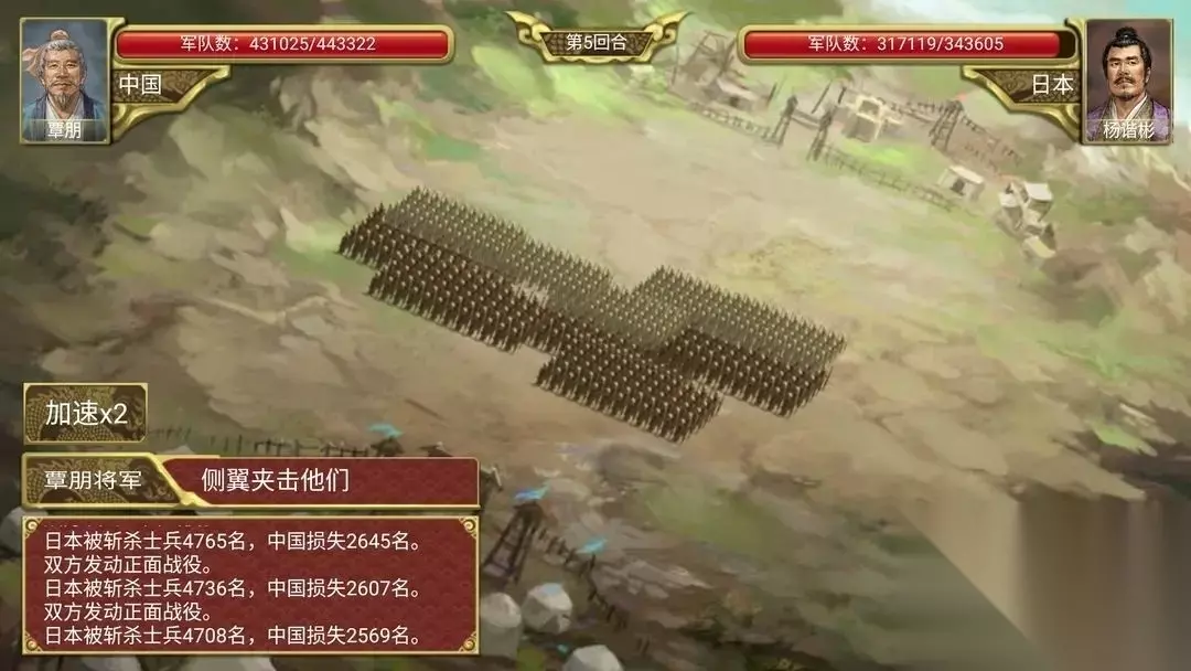 当准备工作做完之后,就可以调兵遣将出征了!部队每个回合只能移动一个单位,部分兵种,如骑兵可以移动多个单位。选择移动或战斗指令之后,部队会变成灰色,在该回合结束之后做出指令。战斗界面也会在该回合结束之后开始。 战斗开始之后,可以根据大将的提示还有当前的兵力进行战斗选择,每次战斗双方都会有所消耗。还有需要注意的是并不是一次就能征服对方的,攻打一个城池需要多个回合的战斗,直到把对方的城池打到完全没有兵力才会胜利。