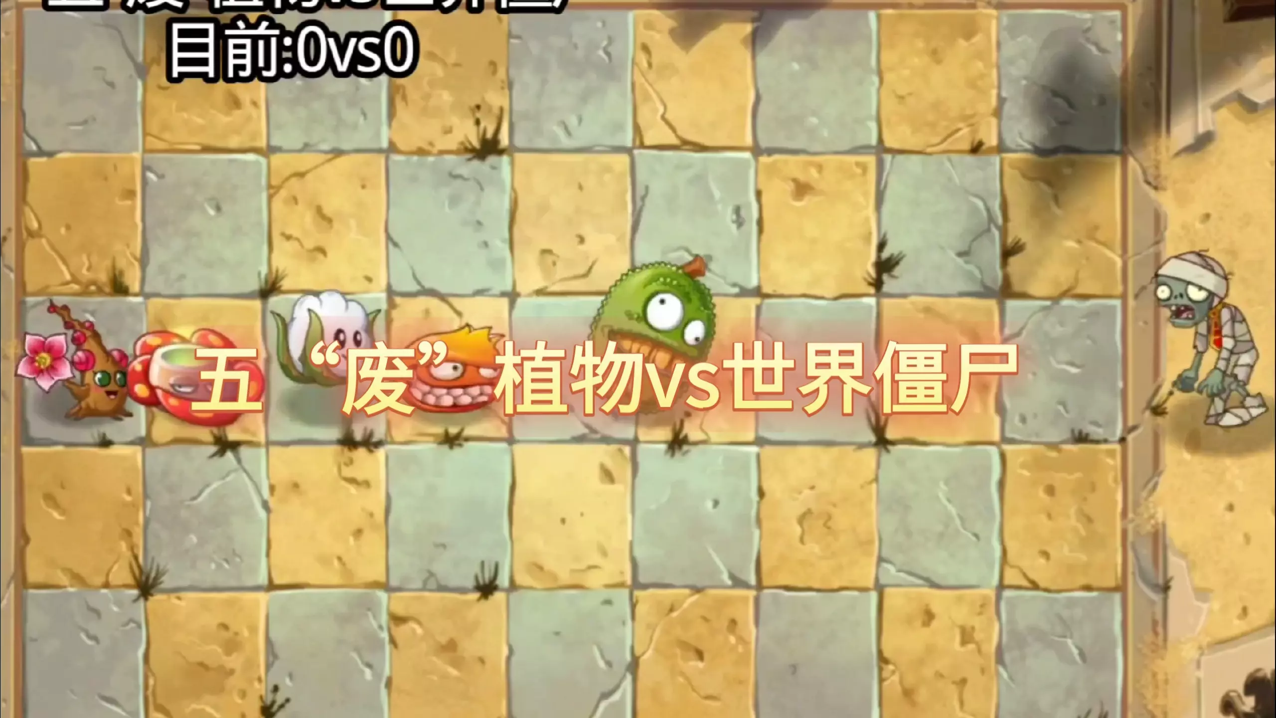 这是《植物大战僵尸2》的趣味对战内容,展示五“废”植物挑战世界僵尸的过程,对战进度从3vs9推进到5vs9,呈现了这些“废”植物对抗不同僵尸的战斗场景。