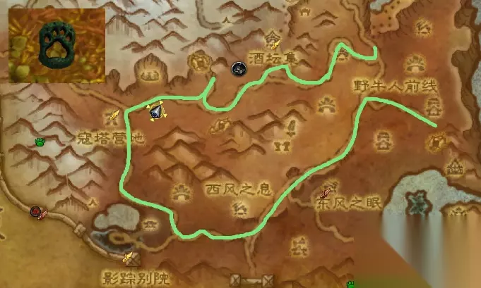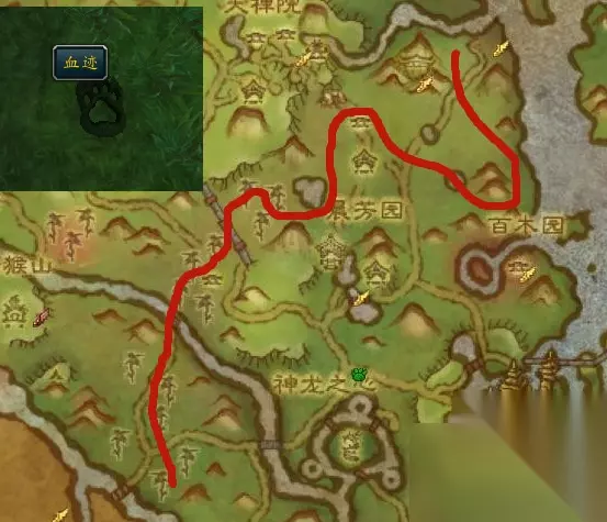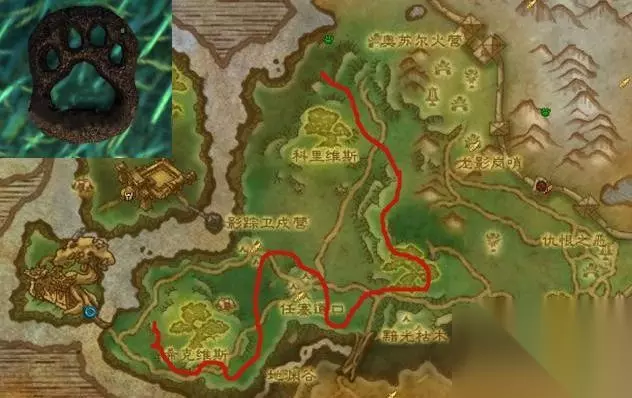 翡翠林的巡逻路线,脚印为绿色,实际想要发现,还是得先巡逻一圈,没有的话,安心原地等待吧!