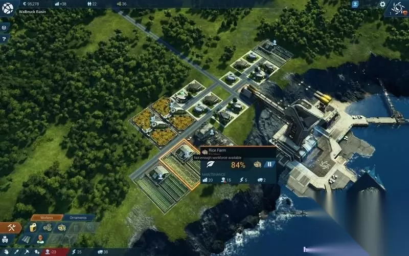 保证人口需求,保障物流、电力、工人稳定,保证产品制造,城市就算稳定下来了。 这时可以升级海中的空间码头,进入新的阶段。