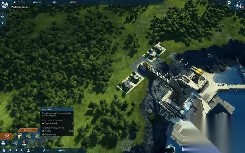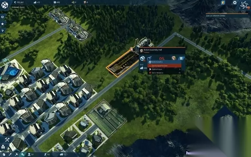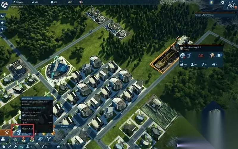 其次,机器人工厂应该尽快的运作起来。 这类高级工厂通常需要不止一种原料输入才能进行制造。 点击修建好的工厂就可以看到需要材料的图标。