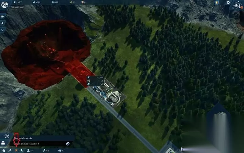 不过必须要修建道路和主基地相连。 注意图中建筑上的红色警告标志,这说明建筑没有道路通向基地。 此时建筑是没有任何作用的。
