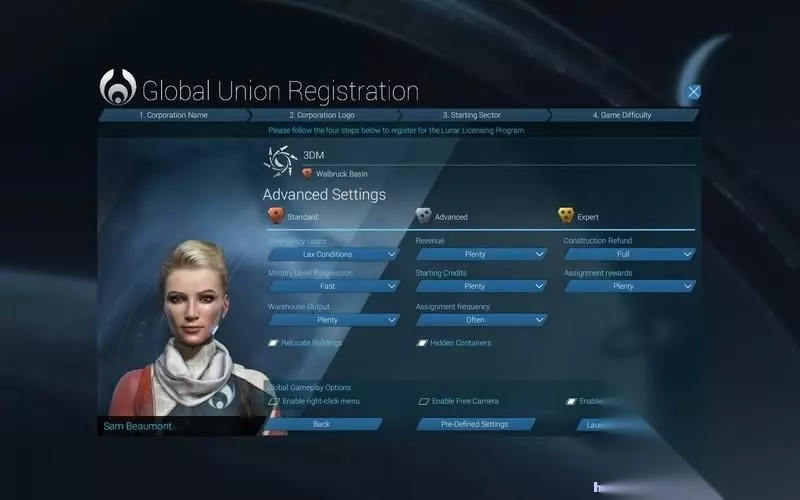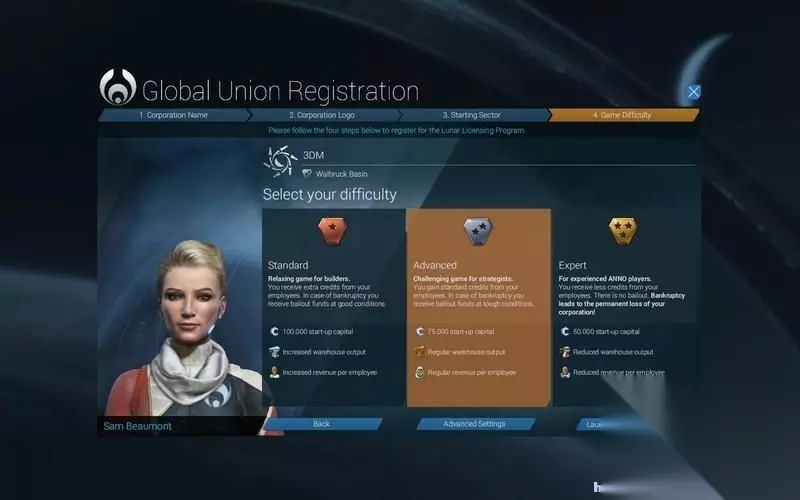 玩家开始游戏后,首先需要城里一个自己的集团公司。 这就是你开发地球和月球的公司。 可以指定任意的名字。