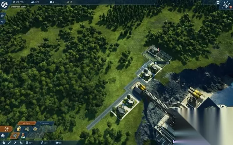 然后在海岸线附近修建水资源处理中心。 依然需要道路和基地相连。