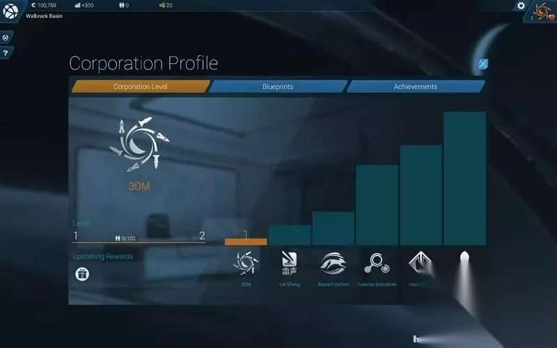 右上方公司图标点击可以查看其它公司的情况。 还有所有建筑蓝图也能看到。 你也可以在这里查看各项成就如何去达成。
