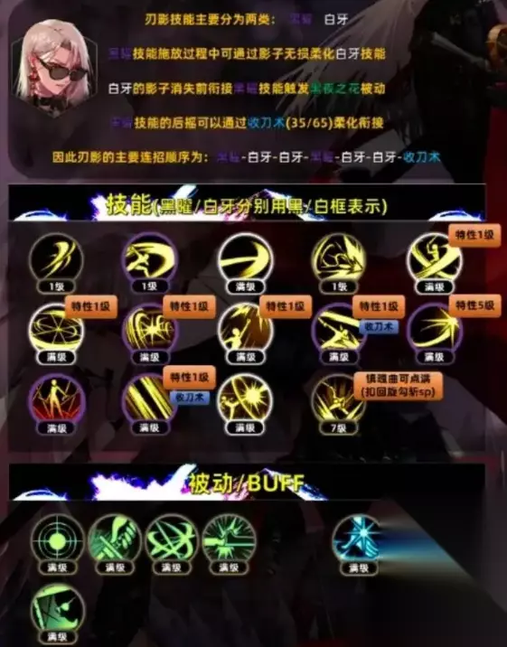 地下城与勇士起源刃影技能加点推荐 1、20级及以上的技能全部加满,20级以下爆空十字刃、回旋勾斩、物理暴击加满。 2、鬼缚封喉只加1点、可以用来作为常规位移或躲避技能。双刃斩击因为冷却较长只点1级用来触发黑夜之花和刃匣。 3、剩余技能点可以全部加在双刃斩击上。特性可以点5点疾刃之影,然后薄暮利刃、爆空十字刃、回旋十字刃、秘术·曜夜斩、白牙落斩、秘术·心斩技能可点1点。 4、TP点推荐加满45疾风之影、65秘术心斩、70瞬影碎魂击。