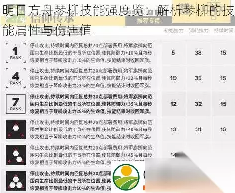 琴柳的技能类型主要包括攻击防御辅助和控制等。其中,攻击技能是琴柳的主要输出手段,包括物理攻击和法术攻击两种类型。防御技能则可以帮助琴柳抵挡敌人的攻击,保护自己和队友的安全。辅助技能则可以提升琴柳和队友的能力,如攻击力防御力速度等。控制技能则可以帮助琴柳对敌人进行控制,如眩晕沉默减速等。 2. 技能效果 琴柳的技能效果主要取决于技能的等级和玩家的等级。随着技能等级的提升,技能的效果也会越来越强大。玩家的等级也会对技能效果产生影响。高等级的玩家可以解锁更强大的技能效果,提升琴柳的战斗能力。 琴柳的伤害值 1. 物理伤害 物理伤害是琴柳的主要伤害类型之,主要来源于她的攻击技能。在战斗中,琴柳可以通过使用不同的攻击技能来对敌人造成大量的物理伤害。她的防御技能也可以有效地减少敌人对自己的物理伤害。 2. 法术伤害 法术伤害是琴柳的另主要伤害类型。与物理伤害不同,法术伤害主要来源于琴柳的法术攻击技能。这些技能可以对敌人造成持续性的伤害,并且有可能触发些特殊效果,如减速沉默等。法术伤害还可以受到琴柳的辅助技能和控制技能的影响,进步提升她的战斗能力。 3. 伤害值计算 在明日方舟中,琴柳的伤害值计算主要受到攻击力防御力速度和暴击率等因素的影响。攻击力越高,造成的伤害就越大;防御力越高,受到的伤害就越小;速度越快,攻击频率就越大;暴击率越高,触发暴击的概率就越大。在战斗中,玩家需要根据敌人的特点和自己的需求来合理地调整琴柳的技能使用策略,以获得最大的伤害效果。 通过对明日方舟中琴柳的技能强度和伤害值的详细解析,我们可以发现琴柳在游戏中的表现受到多种因素的影响。玩家需要根据敌人的特点和自己的需求来合理地调整技能使用策略,以获得最好的战斗效果。高等级的玩家可以解锁更强大的技能效果,进步提升琴柳的战斗能力。希望本文能够对您有所帮助!