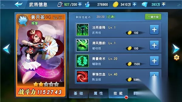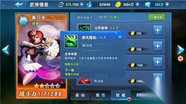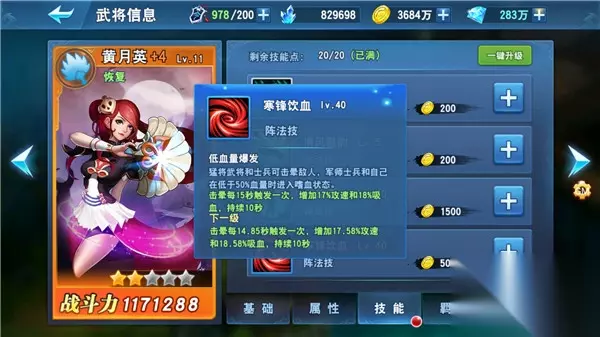 每一个武将都拥有各自的武将技、被动技、辅助技和阵法技。