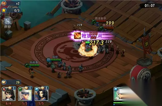 不同类型的技能随武将品质提升依次解锁,白色品质的武将只可使用主动技,紫色品质的武将可使用所有类型的技能。每一个技能有各自的等级,技能的等级越高,效果越强力。 武将技 武将技是武将在战场中可主动释放的技能,点击武将头像即可立即释放,会自动选择目标位置释放技能。