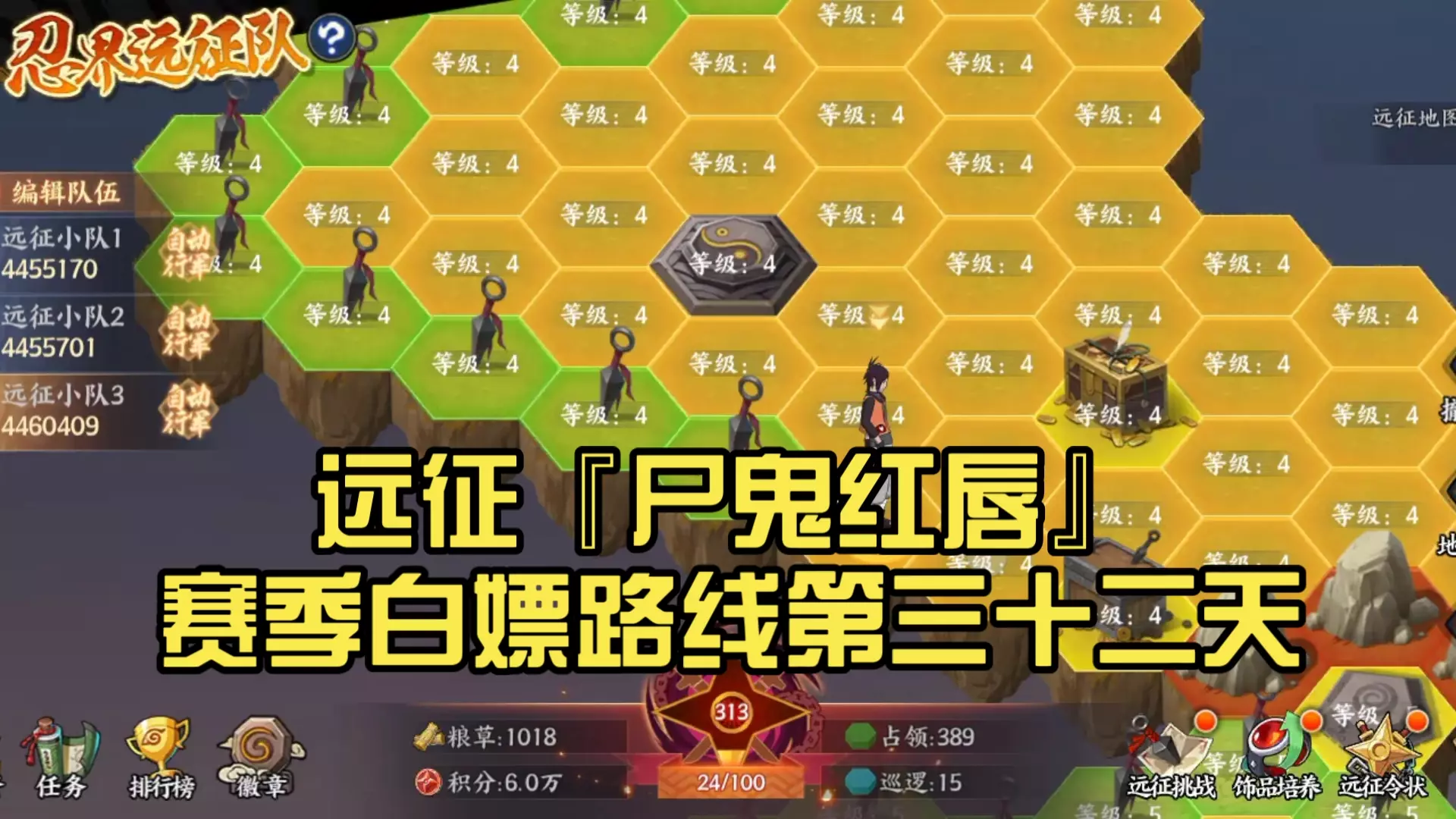 这是火影忍者手游尸鬼红唇赛季,六十级开局忍界远征第三十六天的作业内容,展示了远征对局阵容、忍界远征地图进度与实战战斗画面,分享该阶段的远征开局路线攻略。