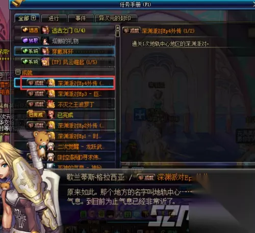 时空裂缝成就任务介绍 如果想要进入新深渊地图,你首先需要完成深渊派对Ep4外传任务,对于有些说没有任务的小伙伴,请先确认你是否已经90级,还有完成魔界普通深渊成就任务。 任务难度不高,就是去打一个任意魔界深渊,然后再和歌兰蒂斯对话就行了。