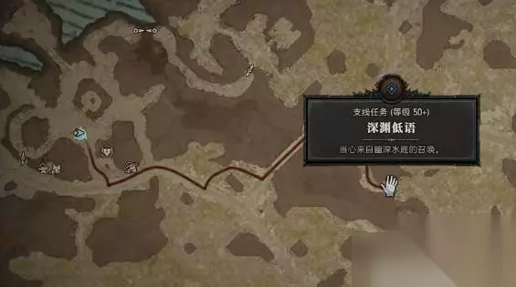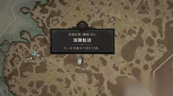 暗黑4深渊低语任务攻略 1、首先是进入游戏中,然后是打开地图,在地图上面是可以找到这个任务,随后是会有指示,玩家就是可以顺着这个路线往前移动。