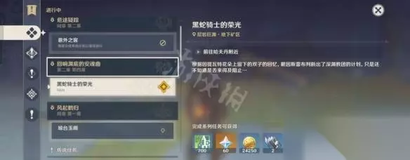 黑蛇骑士的荣光触发方法介绍 想要触发黑蛇骑士的荣光任务必须要完成主线任务(回响渊底的安魂曲)才会出现,位置是在层岩巨渊·底下矿区这。