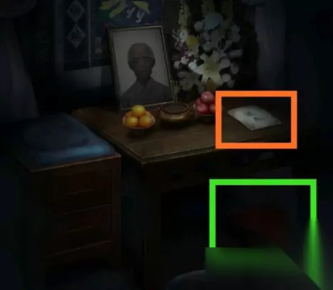 2、点击绿圈箱子输入信件内的密码,查看桌上遗嘱。