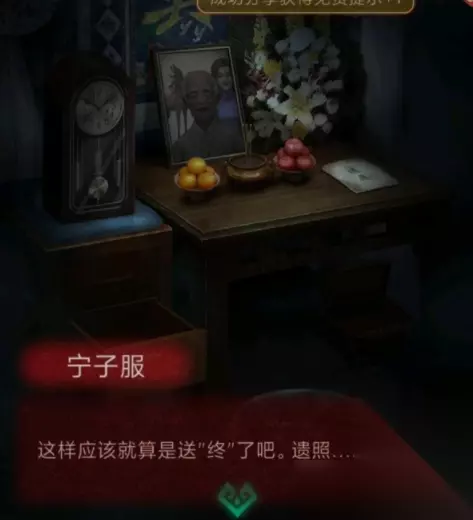 9、到四楼老人的遗像处拿下贡品上的指针。