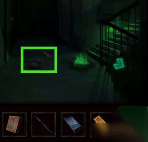 10、拿到空符咒,把门神放在盆内点燃,触发烟雾报警器后熄灭火焰。