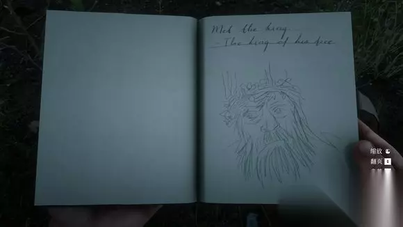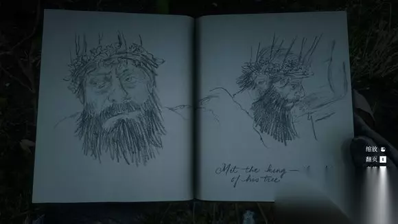 一阶段完毕后扎营睡个觉,亚瑟会记录一篇日记。 “遇到了一个国王,统治一棵树的国王。” 这篇日记是我觉得画得最好的