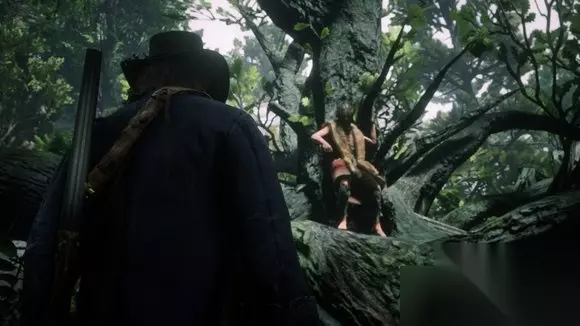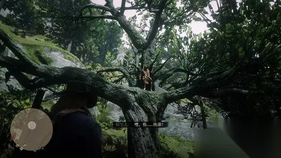 遭遇乔后可以以问候或激怒开局,也可以向对拉塞尔上尉一样无视他、朝他开枪、把它烧死在树上,不过这三种都不算有效触发 问候和激怒只有开头的一两句对话不同,其余相同。问候是清一色的你好,所以这里贴的对话全部以激怒为准,会比较有意思 树上的乔 - 亚瑟 阶段一