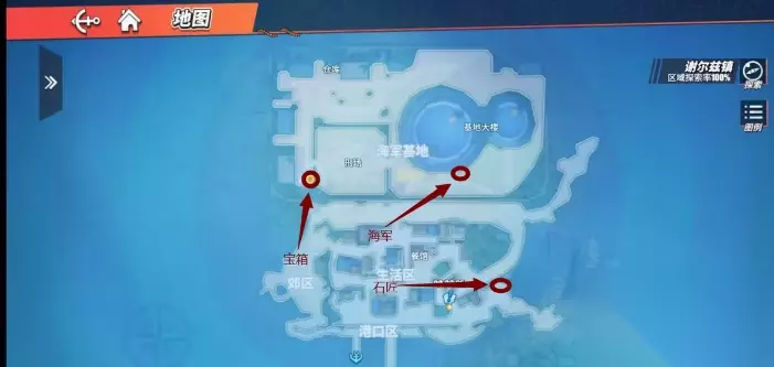宝藏位置: 在海军基地附近,找到四个线索,开启后续任务,来到郊区找到郊区宝箱,然后来到最上方的海军基地仓库,进入仓库找到宝箱密码1657开启宝箱
