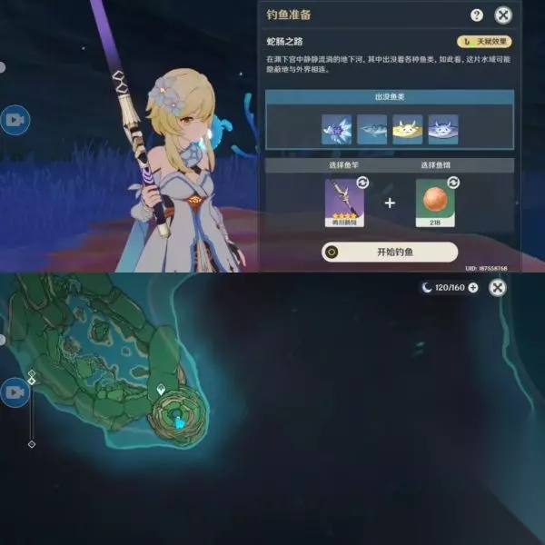 蛇肠之路钓鱼点位:水晶宴,肺棘鱼,佛玛洛鳐,迪芙妲鳐(位置就在传送锚点后方的山洞,也是玩家第一次来到这个地图的一个小山洞)