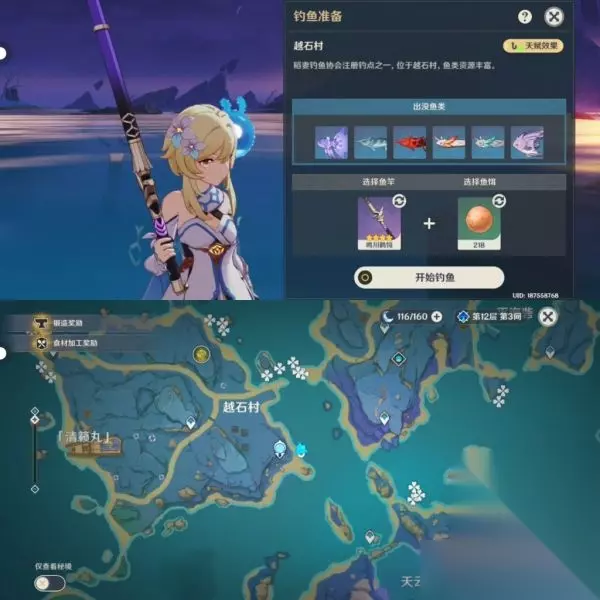 千来神祠钓鱼点位:花鳉、琉璃花鳉、擒霞客、水晶宴