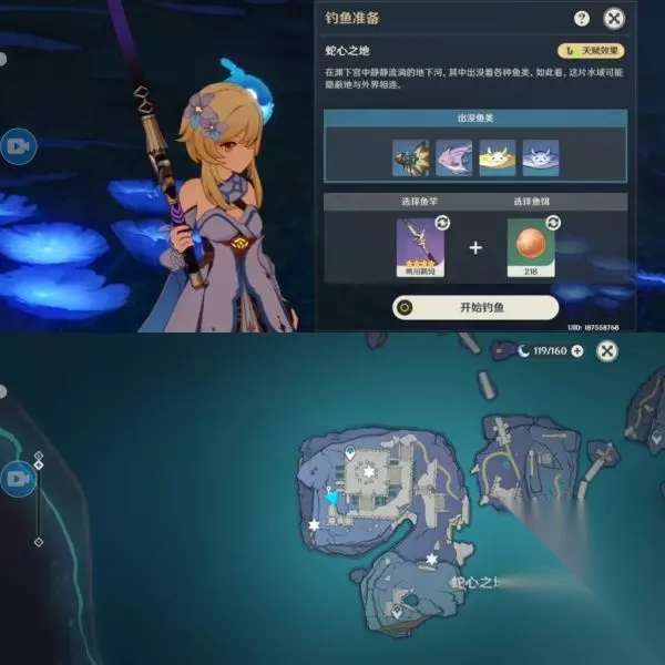 蛇心之地钓鱼点位①:擒霞客,流纹京紫鲽鱼,佛玛洛鳐,迪芙妲鳐(由于路比较曲折在地底下,所以有视频路线)
