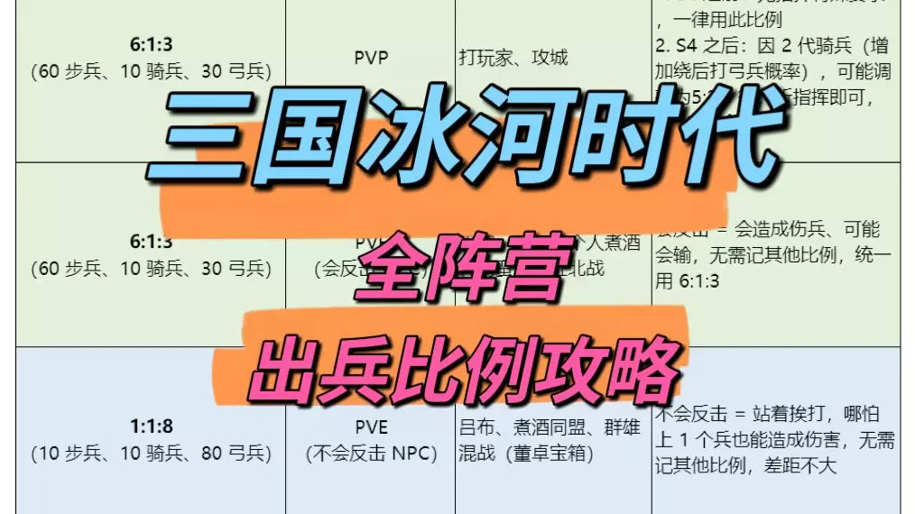 三国冰河时代游戏通用的出兵比例,按照这个来基本不会出差错!