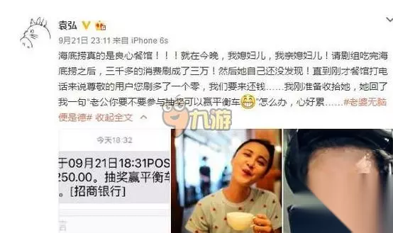 张歆艺在吃完海底捞之后,误把三千多的消费怒刷成了三万!!而她老公十分无奈地在微博吐槽妻子张歆艺无脑。不过小编怎么看这都像是秀恩爱虐狗啊,张歆艺和袁弘怎么认识的?下面就一起来看看吧。 张歆艺误刷三万,袁弘微博吐槽妻子张歆艺:“就在今晚,我媳妇儿,我亲媳妇儿!请剧组吃完海底捞之后,三千多的消费刷成了三万!然后她自己还没发现!直到刚才餐馆打电话来说尊敬的用户您刷多了一个零,我们要来还钱……我刚准备收拾她,她回了我一句‘老公你要不要参与抽奖可以赢平衡车?’怎么办,心好累……”袁弘感叹老婆无脑张歆艺直呼我错了。