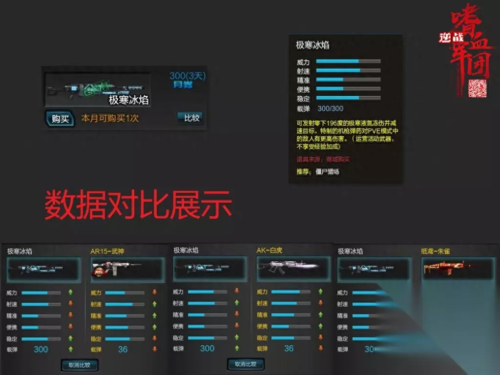 那么冰焰的伤害怎样呢?首先值得肯定的是冰焰的伤害还是蛮高的,数据对比上在威力只输给AK系列,AR以及SCAR的威力都没用冰焰伤害高,但通过测试会发现这里数据对比是有误差的,冰焰并没有朱雀的伤害高但是可以说差的也不多,如果要找个相似的话应该是和95系列步枪伤害接近。