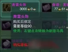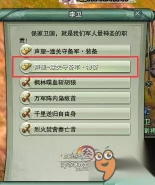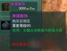 最后还有一套可能大多数小伙伴不知道的马具,奔雷马具,是潼关军声望可换得的马具,而在声望一览并没有看到,大家到战乱风华谷这个位置找NPC李卫,选择声望物资可以看到,不同的等级可以兑换不同的位置的马具,一套下来9000J,个人觉得比较好看很适合天策。