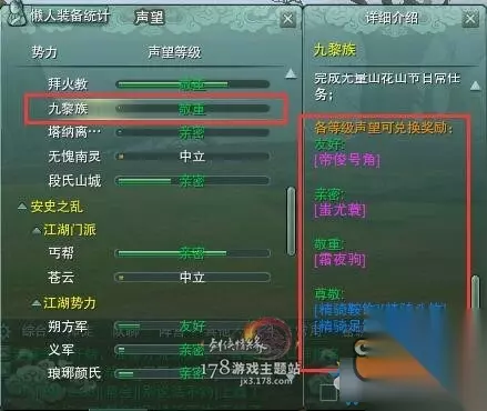 九黎族的声望马具,在无量山可以换得,应该算是比较经典的声望马具了,自己非常的喜欢,比较适合白色的马匹使用,一套下来不到一万金,比较划算,加速的话也比商城马具快,提升5%的速度。感觉搭配白色的马比较好看,另外声望达到敬重可以5000j购买一匹速度120的单骑马,非常适合单身狗。