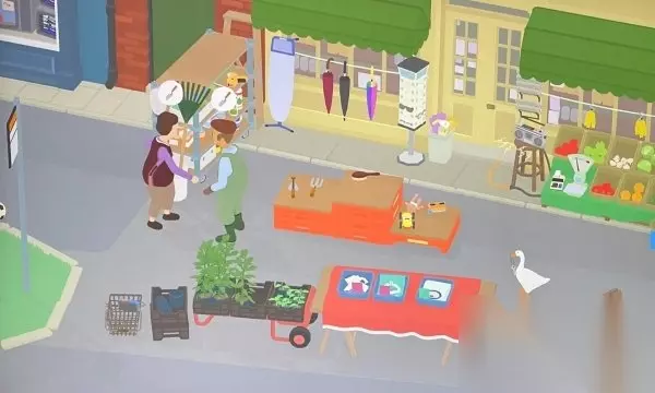 3、让男孩子戴错眼镜 在马路上能看到一个小男孩在玩飞机,我们上前去吓他,他会被我们吓的摔倒,摔倒后他的眼镜会掉地上;我们将他的眼镜拿起来放到一个他找不到的地方,趁现在去商店里拿一副眼镜放到小男孩前面,小男孩摸到眼镜后戴上,就能完成任务了。 4、让人买回自己的东西 你可以先把小男孩的飞机偷偷藏起来,然后放到小商铺的柜台上。当大娘看到后,她会误以为那是她自己的东西,于是就会对小男孩大喊大叫,把他吸引过去。这样一来,你的任务也就成功了。 5、上电视 想要完成这个任务,你得跟【把小男孩困在电话亭】的任务一起进行。首先,你要让小男孩打电话,这样电视店里的老板就会出来。接着,你可以趁机溜进商店,按下门口的按钮,然后大鹅就会上电视啦。 6、去购物 购物的篮子就在小商铺最左边下面的位置,你只需要把所有的商品都放进去就行了。在小商铺里,你能找到卫生纸、发刷、罐头食品和各种新鲜的水果蔬菜,只要你一个个地拿到篮子里就好。至于牙刷和清洁剂,它们分别藏在车库右侧的垃圾桶里和旁边哦。 7、把店主困在车库 这个任务也需要达到上面的条件后才能触发。当车库的大门开启时,你可以随便找个小商铺的物品,把大娘引诱到车库里,然后亲手关上门,把她暂时困在里面(当然,这只是暂时的啦)。