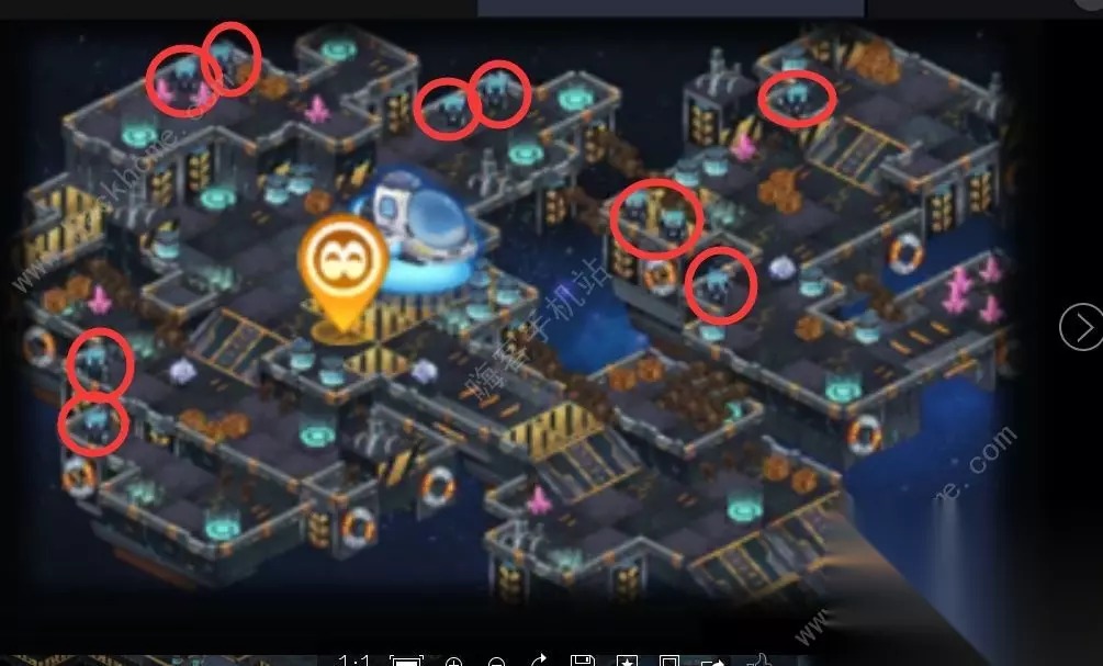 靠近海盗的范围会被传送回1图 ufeff以黄色点为海盗中心点u00a0 红色圈为海盗触发传送范围有点难度 需要你们自己去练习规律跟走位了 毫无疑问 这一次更新的新地图很有趣并且难度也很高u00a0 就是BOOS的强度让我觉得有点尴尬 后面会说到为什么。 ufeff破解完并且记住七个密码之后可以到我用红圈标志的位置输入密码进入到尤纳斯的领地。 打尤纳斯的要求很简单 第一:负面状态