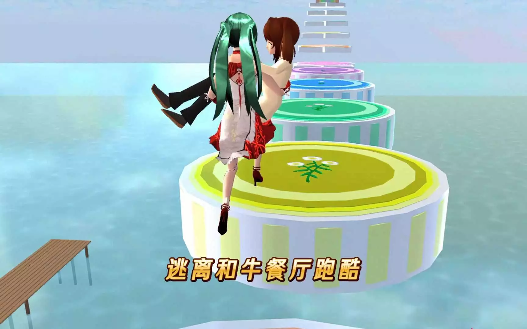 这是樱花校园模拟器的跑酷内容,展示了逃离和牛餐厅的8人接力跑酷,该跑酷有8个ID,过程中还有泡泡球、鸭子车、喷气背包等趣味道具,跑酷难度较高。