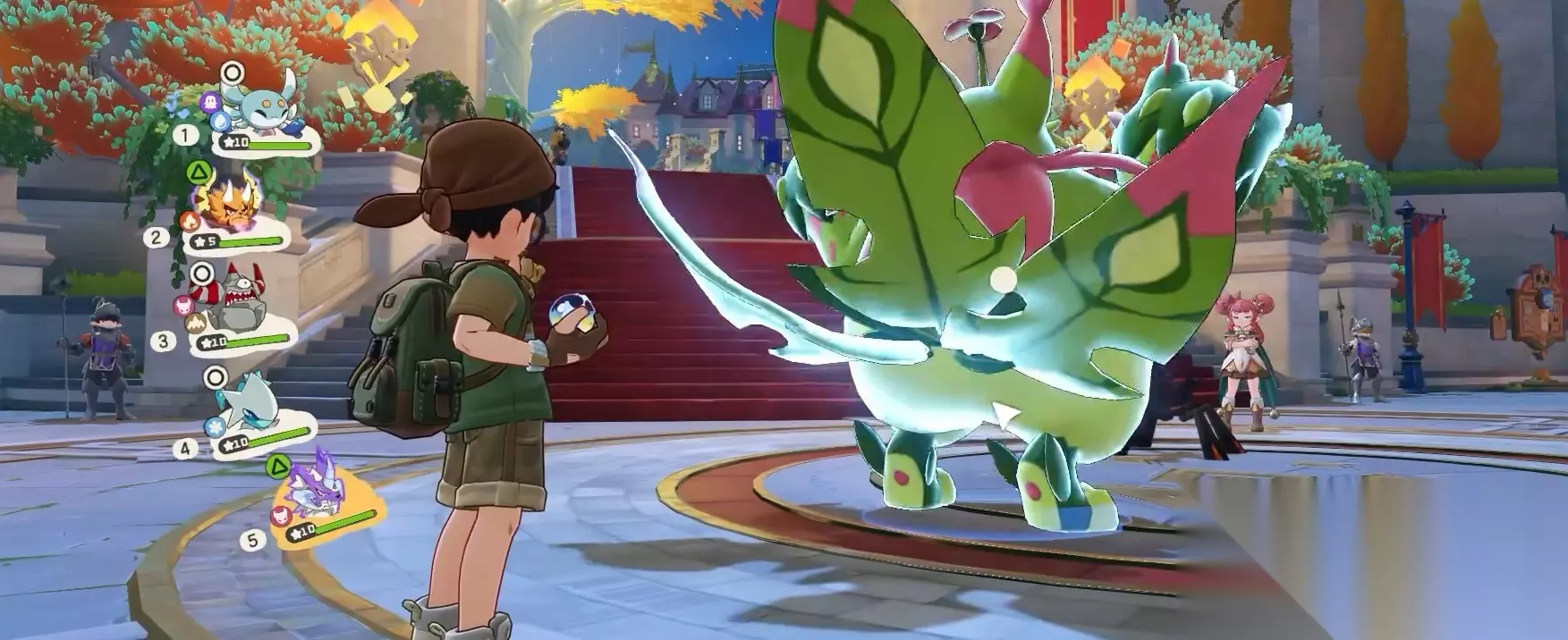 当然,游戏的玩法不仅是提升等级与捕捉精灵,在这里,各位友友可以自行探索,旅途之中,能够遇到很多新奇的解谜事件与剧情任务,本作是支持社交玩法的,所以大家可以叫上三五好友一起组队去挑战副本和世界首领,其中还设置了PVP竞技场,包含排位赛,供玩家彼此之间进行跳战。值得一提的是,游戏的战斗模式是相当有趣的,虽然是比较基础的回合制玩法,但是因为结合了天气系统和属性克制等元素,所以在策略上会更加丰富有趣,还是比较有难度的。