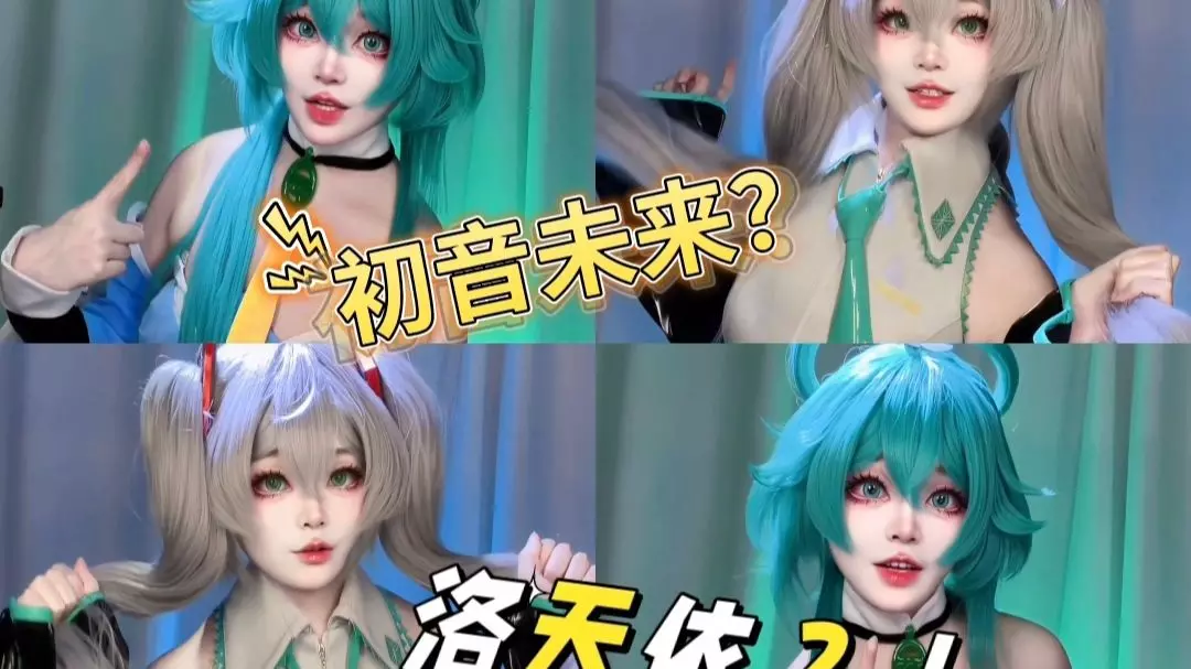 这是一组初音未来的cosplay作品,coser搭配了带猫爪发夹的双马尾蓝发、黑框眼镜,还有条纹西装+渔网内搭的酷飒造型,展现出别具巧思的初音cos风格。