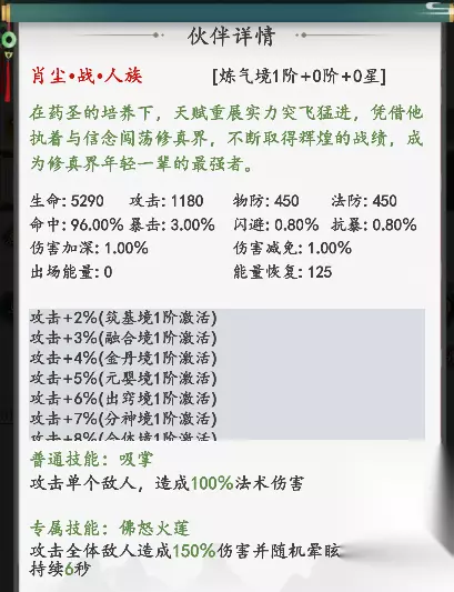 二、进游戏后怎么玩 进入游戏后,首先就是挑战关卡,通关关卡可以获得大量的修为、仙缘和灵币,有了修为后,点击渡劫,提升主角和伙伴的境界,境界相当于其他游戏内的等级,打到第5关和20关时,通关奖励可以获得少年肖尘与少年秦熏儿,新手前期不要把所有资源都给主角,适当消耗就好。