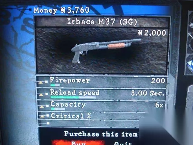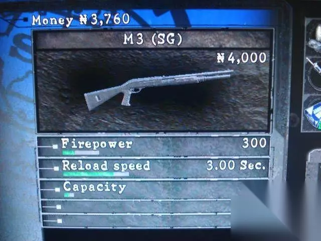 初始性能:火力:200 装填速度:3.00sec.弹夹容量:6特殊升级:Criticla% 着名的M37曾多次在生化的系列作品中出现,本次M37取得的时间早,是初期解围的利器,但是因为后边还有更好的M3,所以初期就不要浪费钱在上面。 2.M3 获得地点:第3章第3部分,第2道闸门处,左边小屋边。 Benelli M3 Super 90 Combat 口径 : 12弹夹容量:8发/夹 弹药最大携带量:32发 重量 : 3.5 kg 初速度 : 1250 英尺/秒 枪口动能 : 2429 焦耳