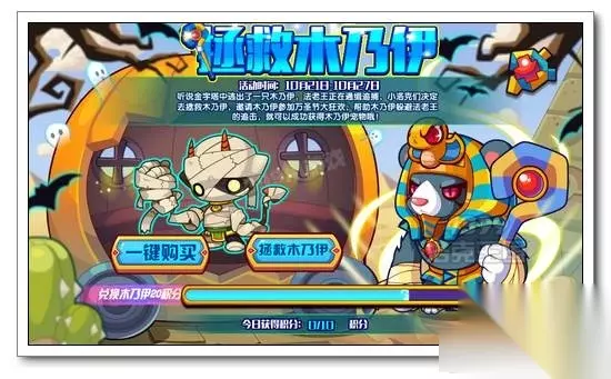 帮助木乃伊躲过法老王的追捕,就可以获得宠物:木乃伊哦! 活动时间:2016年10月21日起~ 活动奖励:木乃伊 看了上边这篇洛克王国拯救木乃伊玩法介绍,各位玩家是否都了解相关信息了呢!找精彩好玩手机游戏请浏览233乐园。 如转载涉及版权等问题,请作者与我司联系,我司将在第一时间删除或支付稿酬。