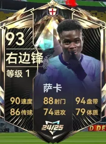 赛季之星萨卡:93总评的右边锋注册位,数据看出是一个顶尖的边锋位置球员,对比之前欧战萨卡和欧洲杯萨卡,三者数据属性都平分秋色,不同点就是技能特性方面,个人推荐性价比最好的就是这张新赛季之星的萨卡。